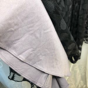 The bodice is cotton overlain with black sheer silk with black dots