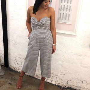 SHEIKE Monterey Stripe Strapless Wide Leg Cropped Jumpsuit