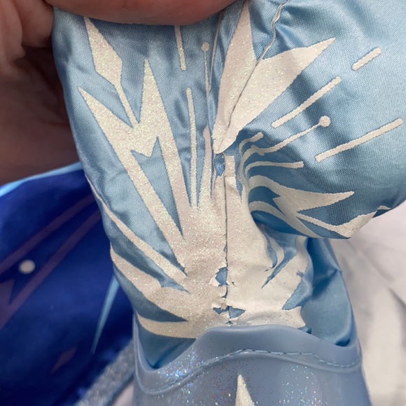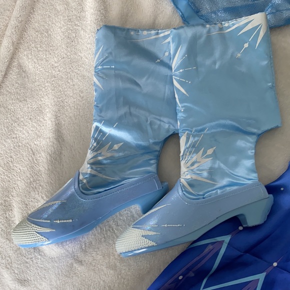 Disney Elsa travel costume with boots. Boot has slight peeling of white design in front. See photo. Size 4-6X