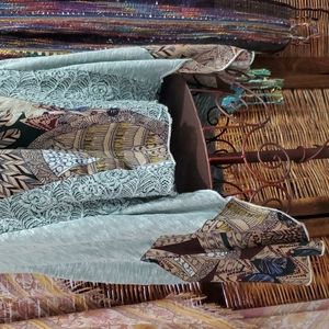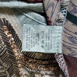 Light green cotton blend tank with bead and lace embellishments at V neck. Bottom sides and back have patterned material with lace edging on back. Size S, 17" pit-to-pit, length approx 30" from shoulder, longer sides are approx 32". NWOT