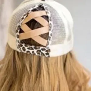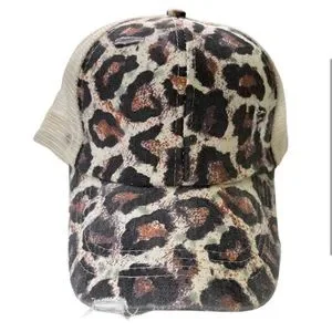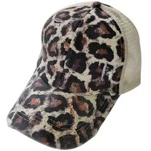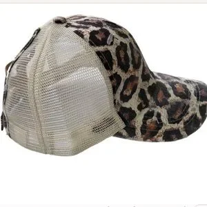 Leopard Distressed Ponytail Baseball Hat