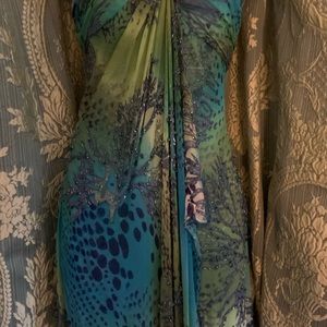 SUE WONG ORIGINAL SEQUINS GOWN, SHOULDER ADJUSTABLE STRAPS. SIDE ZIPPER