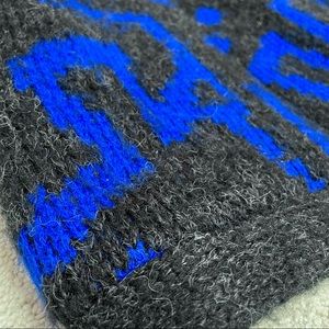 Black & charcoal gray with gray / white fibers & royal blue