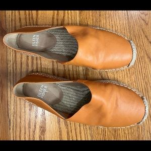 Eileen Fisher has created a lovely harvest orange leather espadrille flat with a jute insole with a leather heel pad, leather lining and easy slip-on design for everyday use. Supported by a rubber outsole for comfort, flexibility and traction. EUC, noting minor wear, creases. Size 7.5 #petfree #smokefree