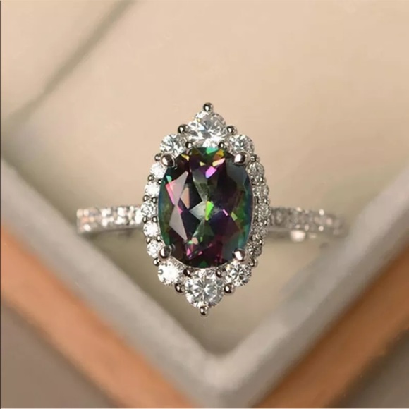 New 925 Silver Oval Cut Mystic Topaz Ring