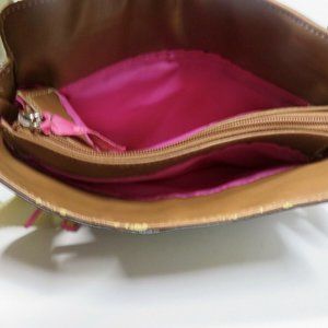 The Sak Rainbow small shoulder bag with brown faux leather trim, braided handles