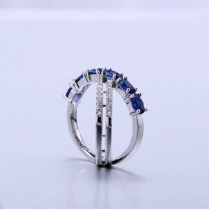 "Oval Royal Blue Anillos Unique Three Lines Silver Ring for Women, VIP272