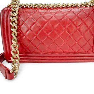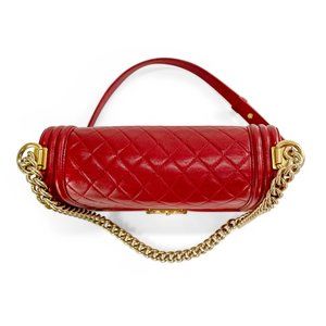 Part of the Boy Collection designed by Karl Lagerfield, this Red Boy Bag is a rare find these days. The collection celebrated the male influences on the brand Coco Chanel became famous for, which is still relevant to this day. Any Chanel admirer understands and appreciates the value of such a special creation. The classic quilted design combined with the popping red color creates a powerful look that instantly grabs attention. It features a ruthenium chain strap with a leather pad.
