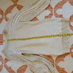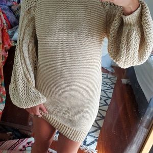 Beautiful.never worn just tried on.. carmen knit dress size large. almost 33 inches long and has give and will drop because of heavy crochet