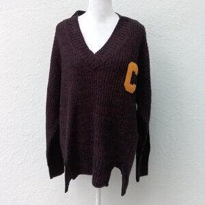 Varsity Sweater, High School Letter Sweater, College Varsity Sweater, Preppy Sweater, New with Tags Burgundy V-Neck Sweater