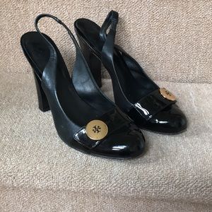 Tory Burch sling back black pumps. About 3.5 inch heel. Good condition. Very comfortable!