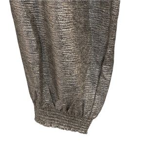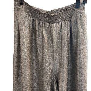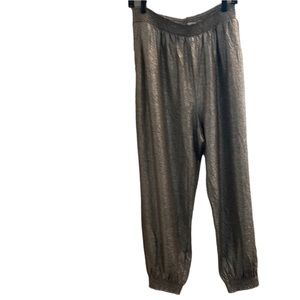 Metallic Pants Two front pockets deep enough for cell phones. Wide Stretch elastic waist for Style & Comfort. Elastic ankle stretch for easy walking, running and/or Dancing. You can wear these for all seasons.