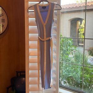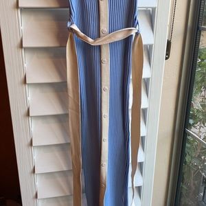 Beautiful Blue V-Neck Bodycon Dress! Accentuates the Whole Body! Comes with Tie Around the Waist! Button Accents to Add Style! (The Buttons Do Not Separate from Dress)