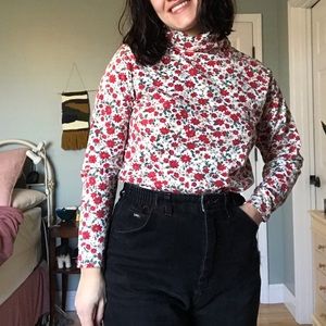 Cute floral Christmas turtleneck long sleeve shirt Size small. Good used condition. See photos for measurements. Non smoking home