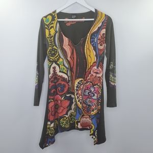 Desigual Boho Beaded Floral Tunic Long Sleeves Top