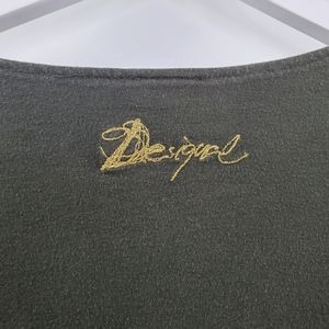 Desigual Boho Beaded Floral Tunic Long Sleeves Top Gray
