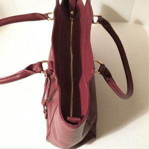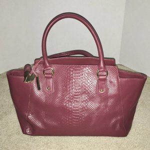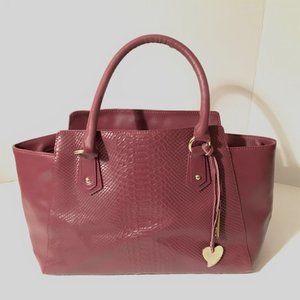 Cuore & Pelle Musette Burgundy Snakeskin Embossed Leather Handbag Shoulder bag Carryall Tote w/Embossed Gold plated hardware and charm