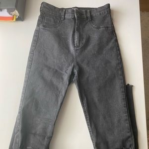 Great condition - stretchy material. Super high waisted. Size 4. Really cute on. Great with any color shirt. Pale Grey