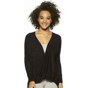 Felina Women's Sz L Soft Modal Twist Front Long Sleeves Lounge Top Tee Black
