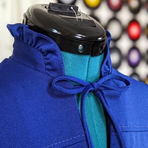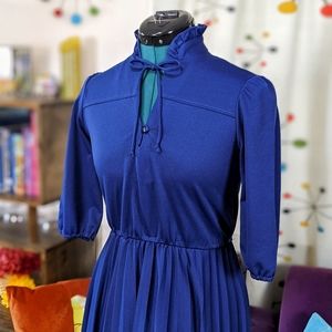 ✦FOR SALE: Vintage Pleated Secretary Dress. This dress by label Kings Row is so cute! She features a high cut ruffly collar with a keyhole neckline that's created with a bow on top and a button and loop on the bottom. The skirt swings so beautifully with all those pleats! The half sleeves have working elastic on the cuffs. Elastic waistline, belt loops (no belt). XS-S 30-32" Bust, 20-28" Waist.