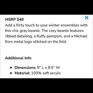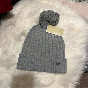 Michael Kors beanie hat with pom, gray color. Brand new with tags in original packaging, never worn. Smoke free home. Feel free to make an offer ☺️
