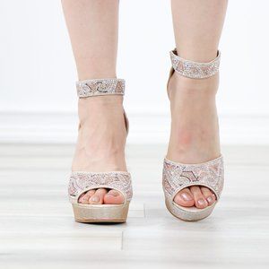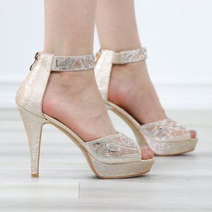 Sparkly Rhinestone Glitter Diamond Platform Ankle Bracelet Open Toe High Heel