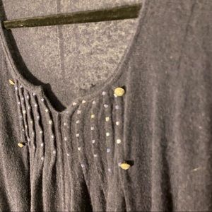 This is a super cute, sexy navy blue sweater with iridescent beading and filigree rhinestone buttons. Excellent condition.