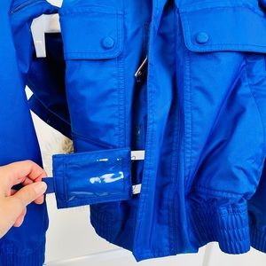Description: This winter jacket has everything you need with plenty of pockets and even an ID card slot attached! These pockets are easy to access and great for carrying your credit card, phone, and lift pass. The lined fur for the hood is detachable. There are underarm vents for good ventilation while you are working up a sweat. This is the ultimate jacket for winter sports!!