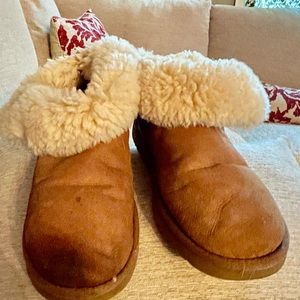 Embellished with a wood-button closure, this plush sheepskin boot is more versatile than ever – fasten for extra warmth, or fold down for a full, fluffy collar. Finished with our signature sole for added cushioning, traction, and durability.