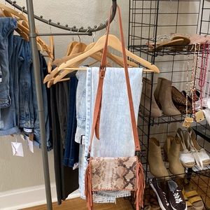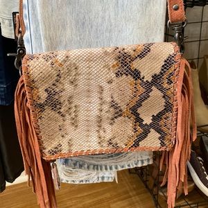 Naughty Monkey Snakeskin & Suede Fringe Crossbody. Carried once for a couple of hours. Flawless & SO CUTE! Very boho/southwest style.