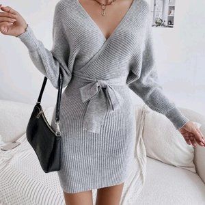 Our Law of Attraction Kimono Sweater Dress makes sweater weather better than ever! The top offers a billowy drape neckline with relaxed sleeves. The skirt is more fitted with an exaggerated waist tie. The ribbed fabrication lends to the cozy vibe of this heather grey dress.