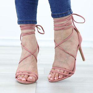 Blush Pink Strappy Open Toe High Heel Stiletto Sandal