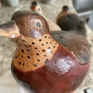 🌲Three wooden birds with backs that open. Thick metal legs on one