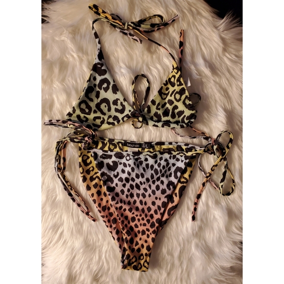 Boohoo Multicolor Leopard Print String Bikini - New w/out tags