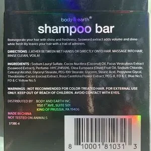 Body & Earth Shampoo Bar Ocean Waves Volumizing Formula Seaweed Extract Sea Salt