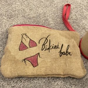 The makeup π pouch reads: BIKINI π BABE and the can holder says the same thing on it.
