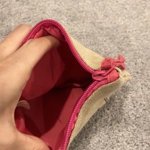 Pouch has a pink strap and the can holder is outlined in a hot pink color. Letters on the back side of the pouch that can probably be rubbed off. (See pics!)