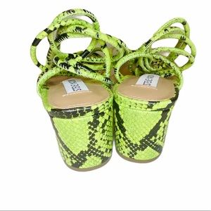 NWT Steve Madden Impressed Neon Green Snake Print Ankle Wrap Dress Sandals