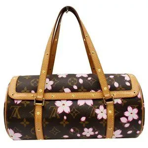 LOUIS VUITTON Papillon Monogram Cherry Blossom Tote Handbag Brown