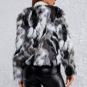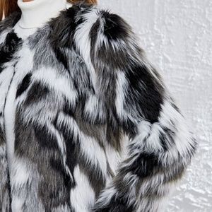 Cozy Black White Luxe Vegan Fur Fuzzy Jacket Winter Glamorous