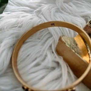 Madewell gold colored slip on bangle bracelet with beautiful black jewels