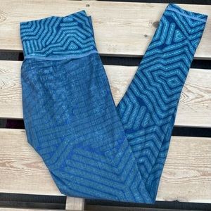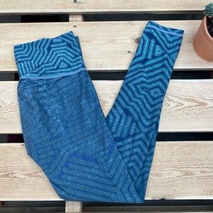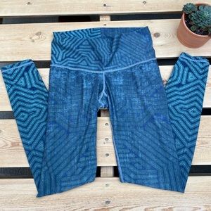 Niyama Sol Eucalyptus Circuit High Waist Barefoot Leggings- beautifully geometric and wavy design in a sublime green blue