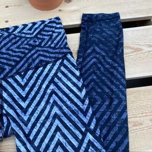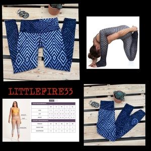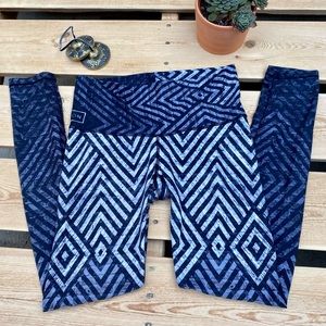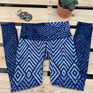 Rare collaboration legging from Trufusion & Niyama Sol. The striking tribal geometric pattern with a batik black blue ombré background.