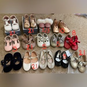 @christinemun443 were you interested in all the sizes 20 and 21 in picture 4? Or only the rose gold euro size 21 and the white bow euro size 21 and pink jacadi sandals euro size 20? I have a listing already for the rose pink, I can but add the ones you want to that listing for you and then add my discount.