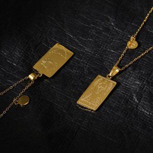 NEW 18K Gold Plated Aquarius Sign Zodiac Tarot Card Square Pendant Ne…