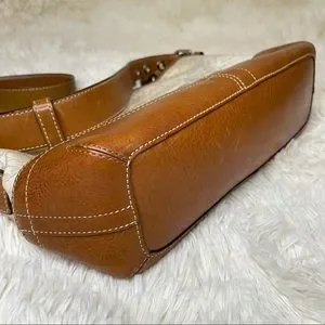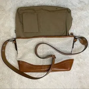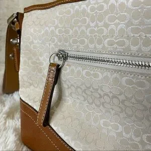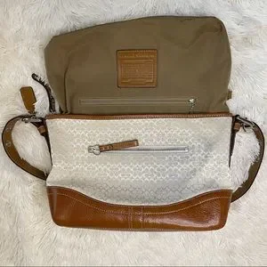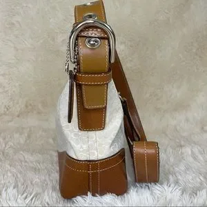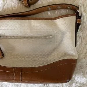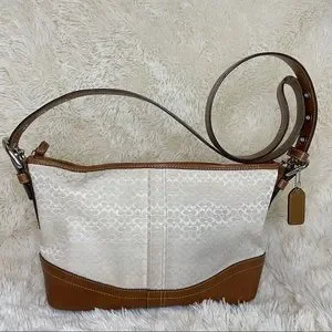 Coach Handbag Shoulder Signature Mini Duffle Ivory leather Brown purse.