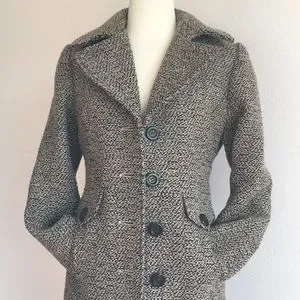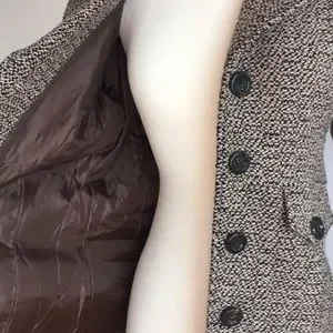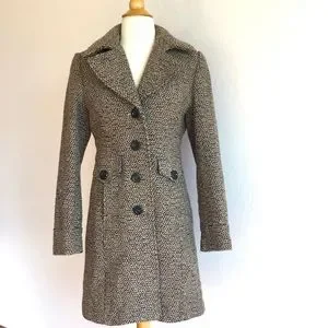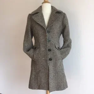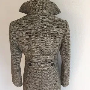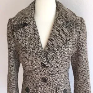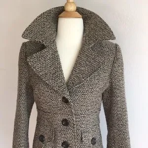 Stylish tan and black wool Giacca coat. Fashionable details with button front and polyester liner (excellent shape!) for comfortable fit. Perfect for nights out to a concert or gala event. Really cute!