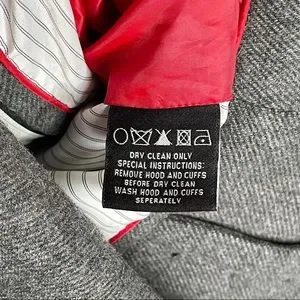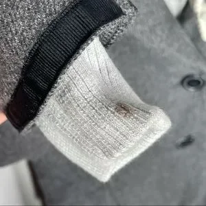 Excellent condition aside from stain on arm, high quality jacket, branding on buttons and details throughout.