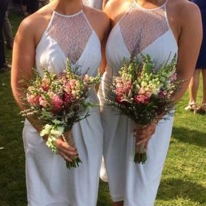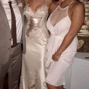 Zimmerman cream silk dress size 3, worn once as a bridesmaids dress and dry cleaned. Two very faint small marks on the chest as seen in the photos, not noticeable unless looking very closely.
