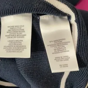 Materials: 87% mercerized cotton, 11% nylon, 2% spandex
